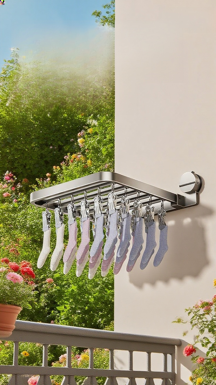 省スペース設計でバルコニーに最適。耐久性素材使用、簡単組立、風通し抜群。下着専用で安心して干せる物干しラック。
