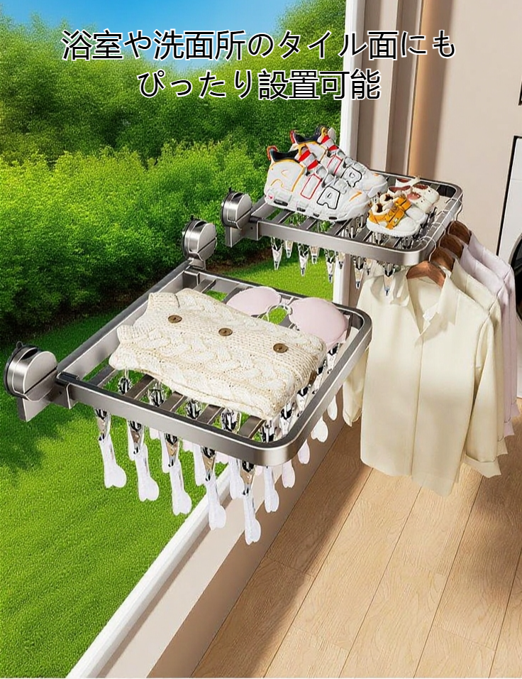 カラー:ガンメタ-18クリップ折りたたみ物干しラック(吸盤式)、ガンメタ-24クリップ折りたたみ物干しラック(吸盤式)、ガンメタ-30クリップ折りたたみ物干しラック(吸盤式)