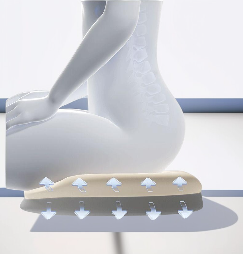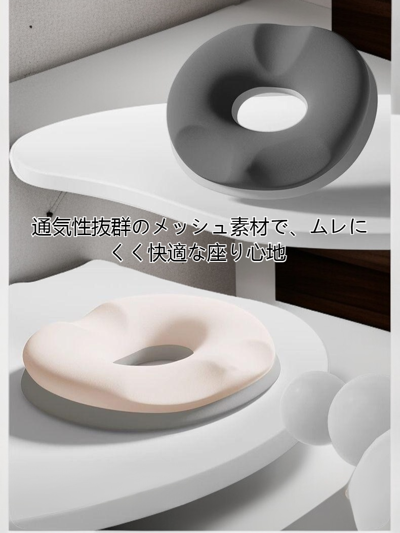長時間座りでも快適な通気性素材使用。圧力分散でお尻の負担軽減。オフィスチェアに最適なシートクッション。洗濯可能で清潔維持。